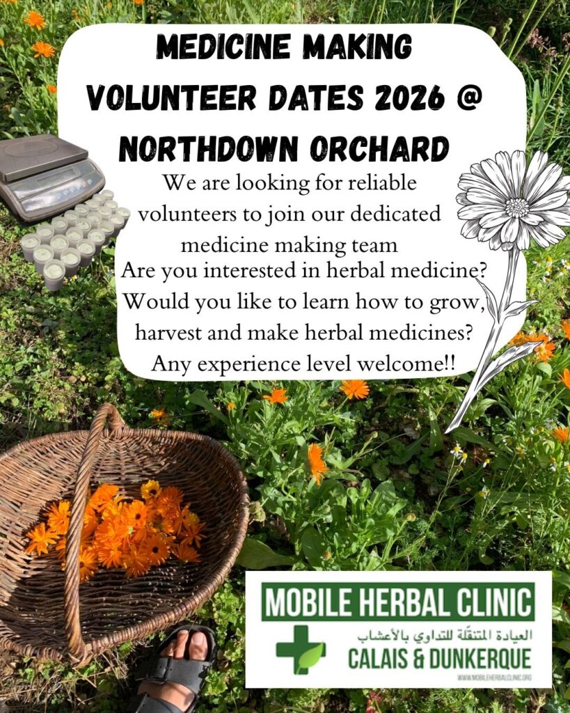 More than 90% of the medicines we distribute with the Mobile Herbal Clinic Calais are grown, harvested and made by volunteers. There are opportunities to get involved across England and Scotland!