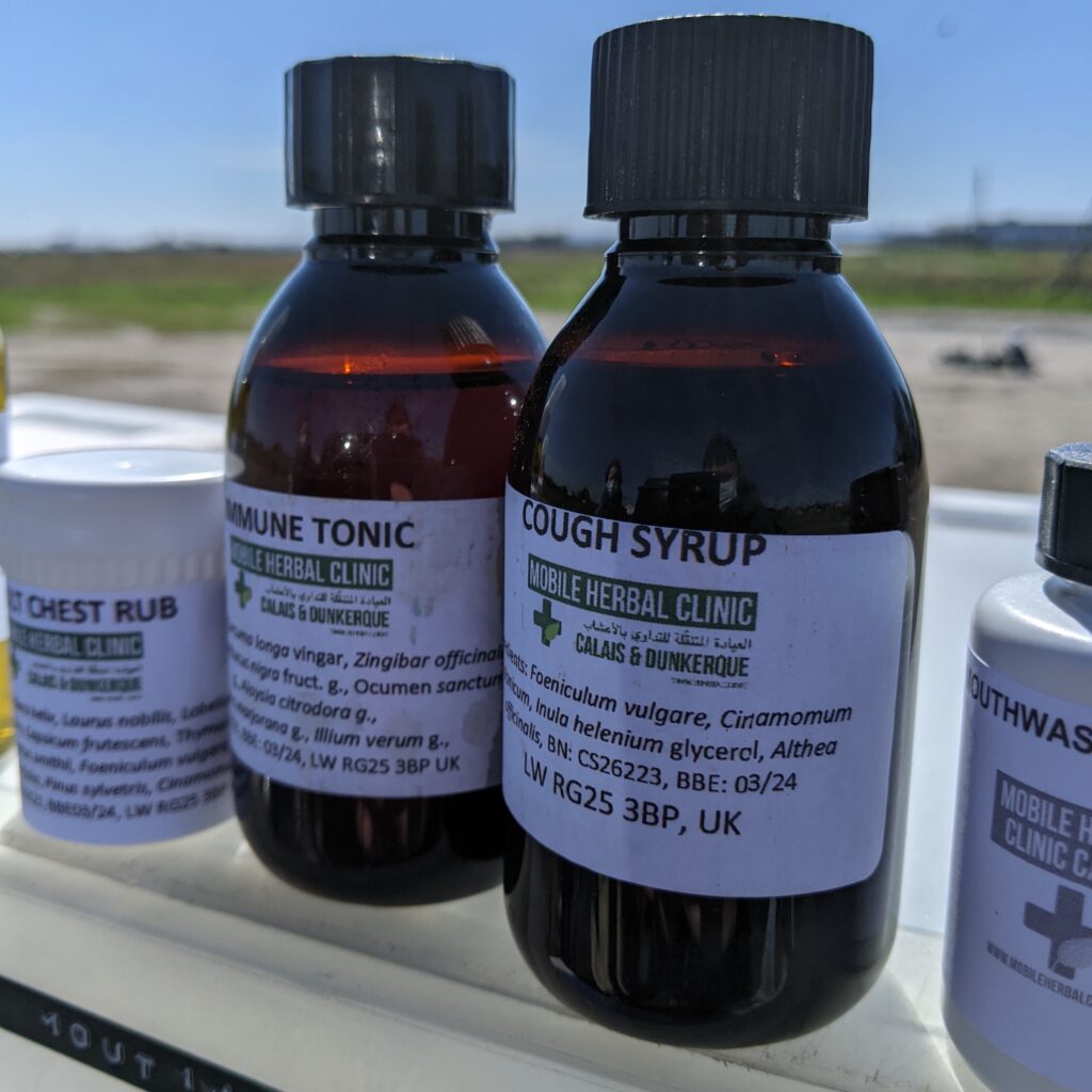 Nicole Rose from the Solidarity Apothecary regularly makes cough syrup for the Mobile Herbal Clinic Calais.